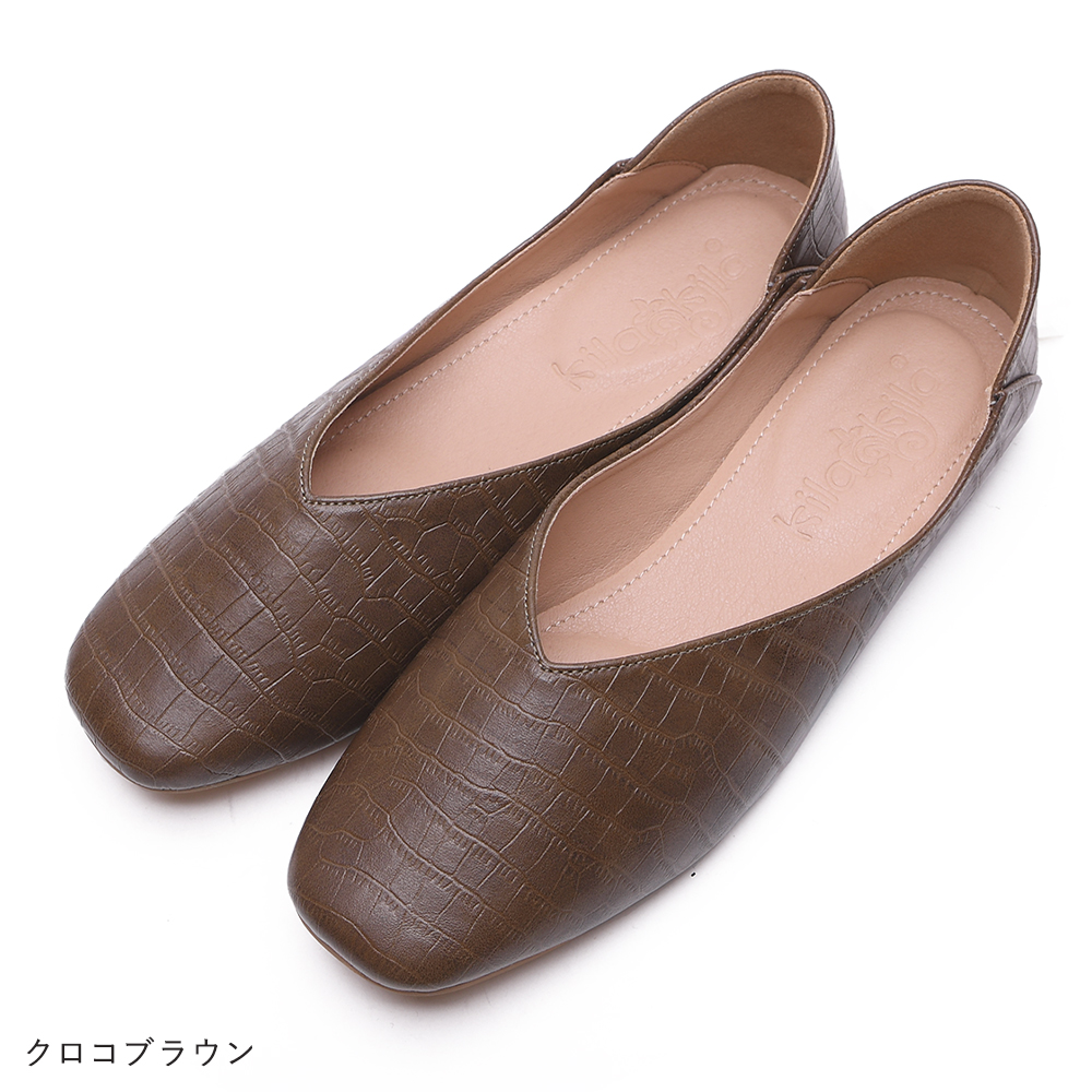 ■スクエアトゥとVカットでスッキリきれい