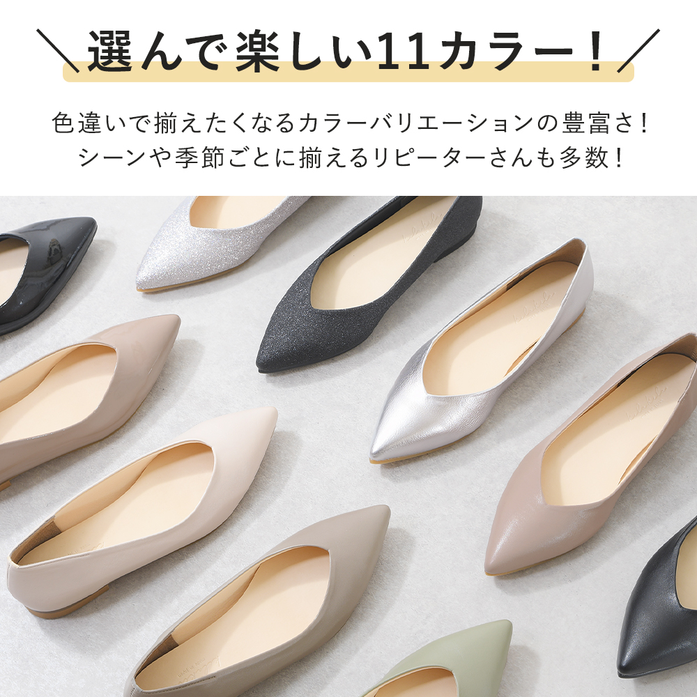 かっちりし過ぎないから、 普段使いや、お仕事履き、お出かけ、冠婚葬祭など 幅広く使えます。 ヒールの低いペタンコパンプスは、 妊婦さんや子育て中のママさんにもおすすめです。